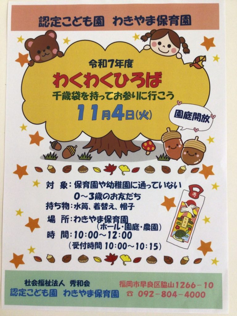 初めての方のご参加も大歓迎です!お友だちも誘って、自然がいっぱいのわきやま保育園にぜひ遊びにきてください(^^)